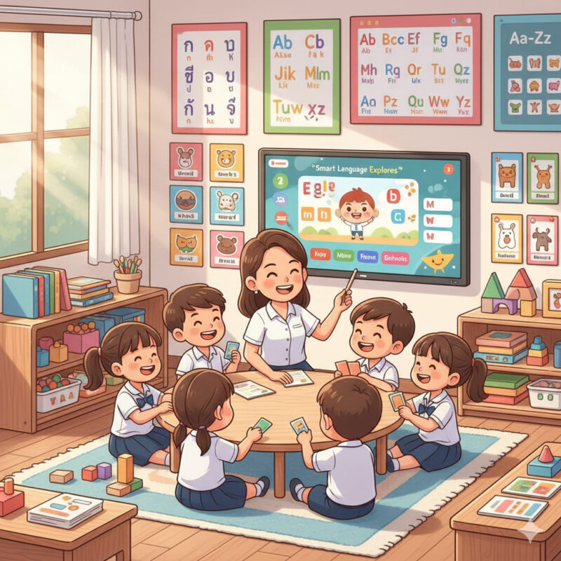 เด็ก ๆ จะสนุกและเพลิดเพลินไปกับการเรียนรู้และได้ฝึกฝนทักษะการใช้ภาษาไทยและภาษาอังกฤษผ่านกิจกรรมที่หลากหลายภายในโปรแกรมที่ออกแบบเนื้อหาสาระเป็นพิเศษเหมาะสมสำหรับเด็กปฐมวัย และมีความสอดคล้องกับหลักสูตรการศึกษาปฐมวัย พ.ศ. 2560 เพื่อเสริมสร้างและพัฒนาทักษะการฟัง พูด การอ่าน และการเขียน สำหรับเด็กวัยแรกเริ่มมีเดียเรียนรู้การใช้ภาษาให้สามารถสื่อสารในชีวิตประจำวันอย่างเป็นปกติวิสัย ด้วยรูปแบบการ์ตูน แอนิเมชันและภาพนิ่งน่ารัก ๆ สีสันสดใส มีความละเอียด คมชัด ตัวอักษรและเสียงบรรยายชัดเจนเข้าใจง่าย ด้วยระบบ FULL HD คุณภาพสูง พร้อมมีระบบการสั่งพิมพ์กิจกรรมและใบงานผ่านเครื่องพิมพ์ออกมาให้เด็ก ๆ ทบทวนกิจกรรมการเรียนรู้และโปรแกรมได้อย่างสะดวก